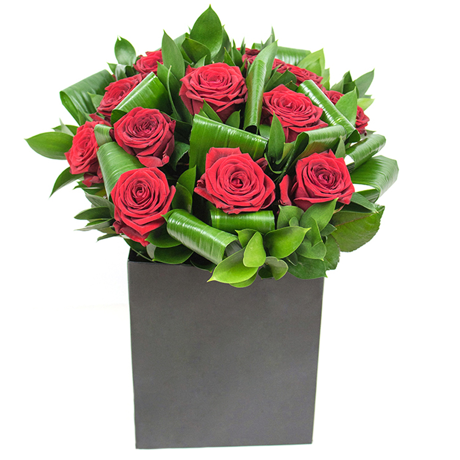 Celebrate timeless beauty with our Majestic Crimson Bloom Ensemble, a sophisticated fusion of vibrant red roses, artfully arranged aspidistra leaves, and graceful touches of ruscus. Every flower is meticulously hand-selected for unmatched quality, ensuring the bouquet radiates luxury and elegance in every petal.